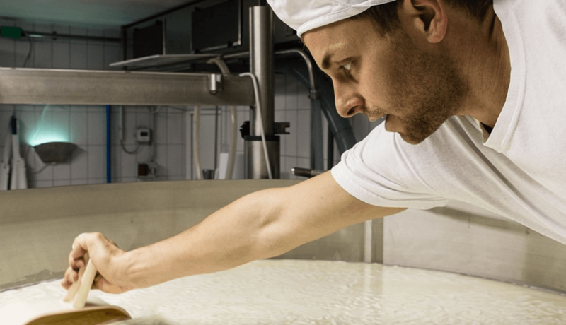 Anfangs haben wir Ricotta hergestellt, aber der Energieaufwand ist sehr hoch und die Ausbeute sehr niedrig. Aus einem Liter Molke bekommt man ein, zwei Esslöffel des Frischkäses. Dann haben wir Molkegetränke hergestellt, mit Früchten und Holunderblüten. Die waren sehr gut, aber es gab keine Nachfrage. In Italien ist Molke nicht sehr bekannt. Dann haben wir mit IDM zusammen eine Sportlernahrung entwickelt. Aber auch die war zu teuer in der Produktion. Ich habe sogar bei Hotels angerufen, bei wirklich allen hier in der Gegend, ob sie ihren Gästen nicht Molkebäder anbieten möchten. Nichts, kein Bedarf.